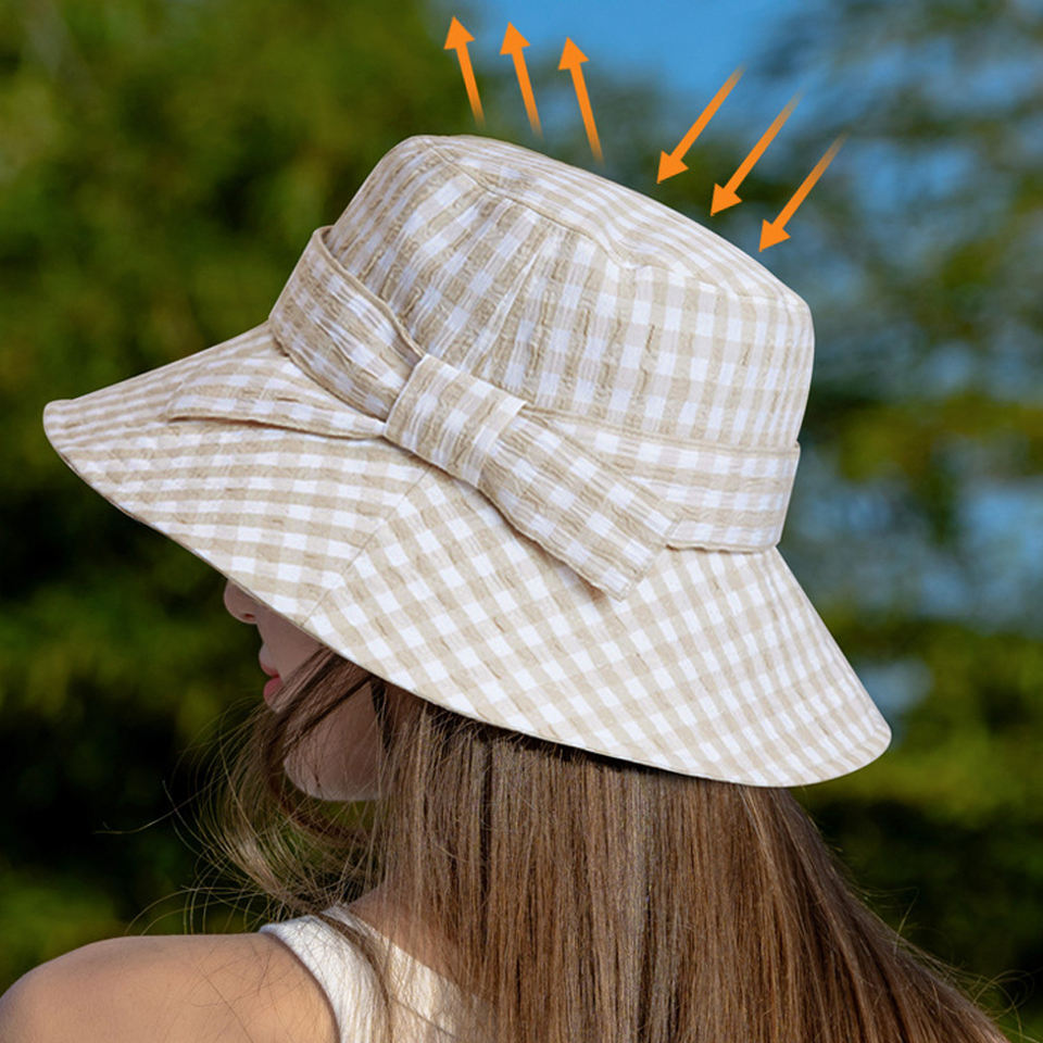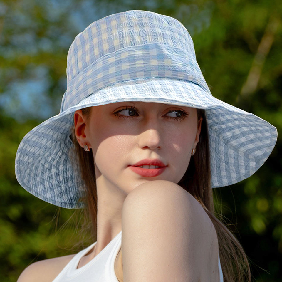 100% COTTON Lady Sunscreen Shading Butterfly Knot Chessboard Pattern Sunhat Fisherman Checkered Hat Bucket Caps