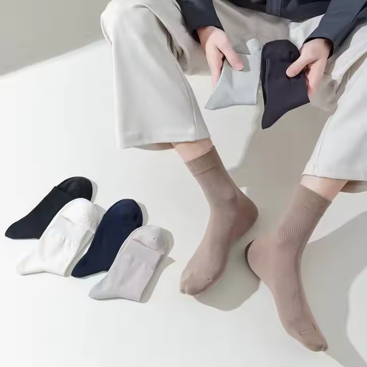 100% coton hommes chaussettes respirant équipage chaussettes logo personnalisé soie couleur Pure haute qualité décontracté mi-tube chaussettes