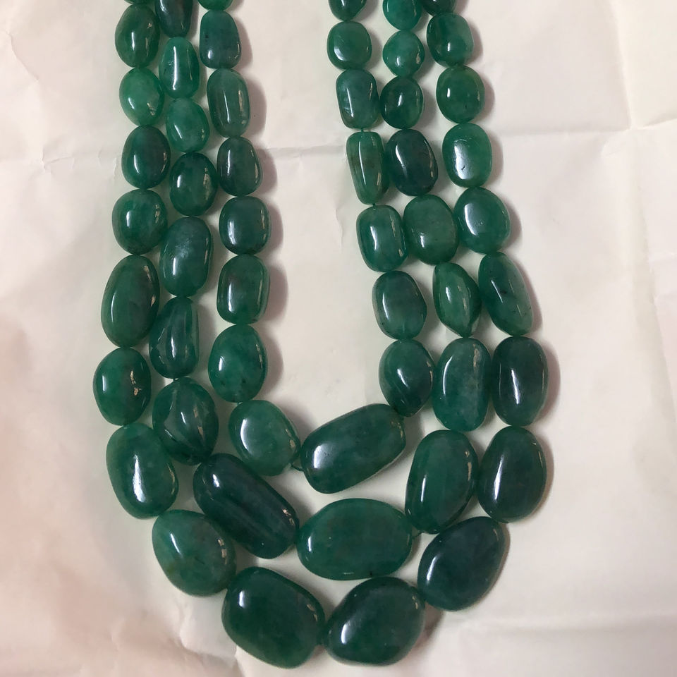 Nom du produit:Collier de perles de pierres précieuses, émeraude précieuse, lisse, pépites, roulées