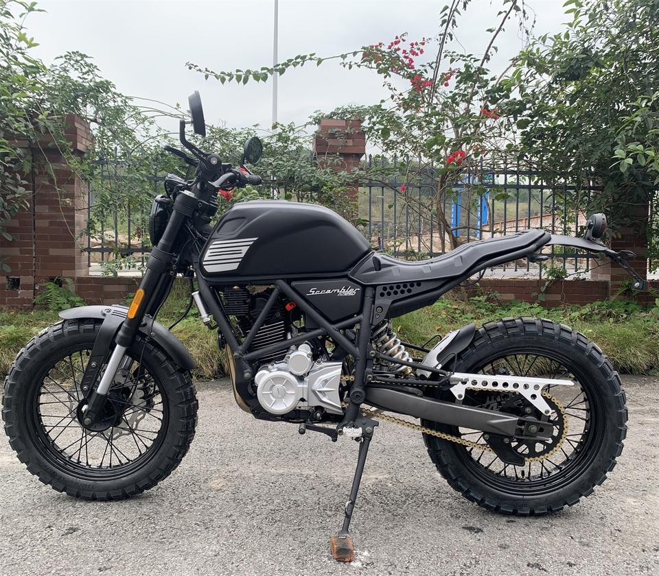 Moteur (CEE):RE 125cc, refroidi par air, unique tuyau d'échappement, 12V, 18-pole magneto D.C