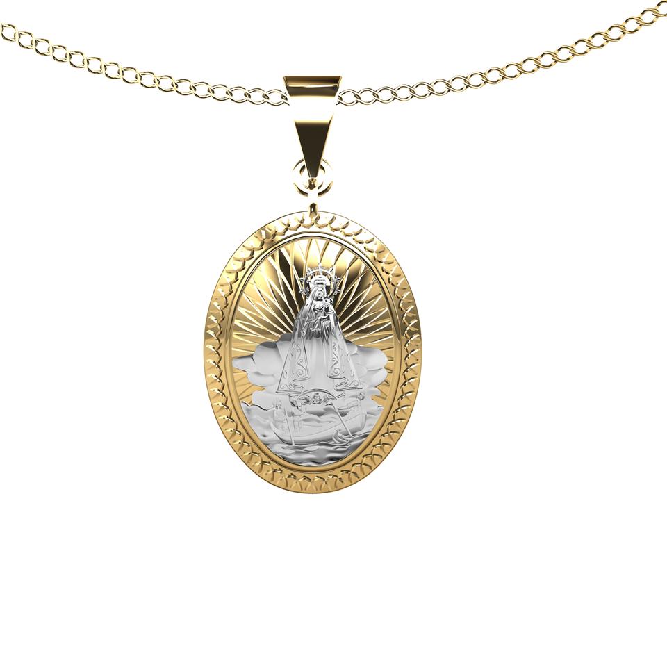 Pendentif ovale en or plaqué deux tons 14 carats pour enfants, religieux chrétien, La Caridad Del Cobre Notre-Dame de la Charité, chaîne lâche