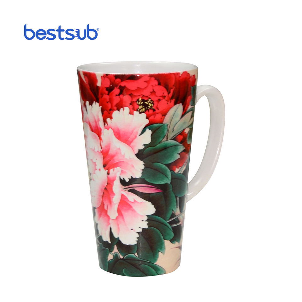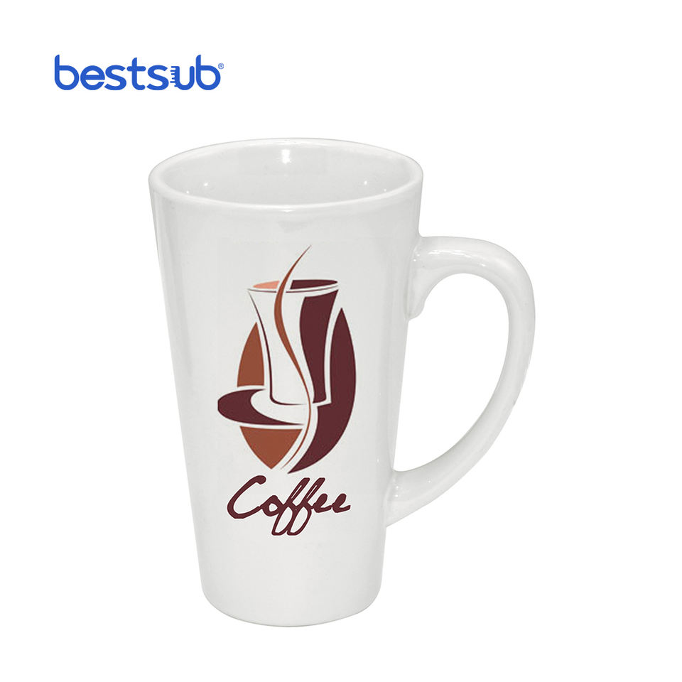 17oz Latte Heated White Coated Sublimation Ceramic Coffee Mug Printing Cone Shape BN3