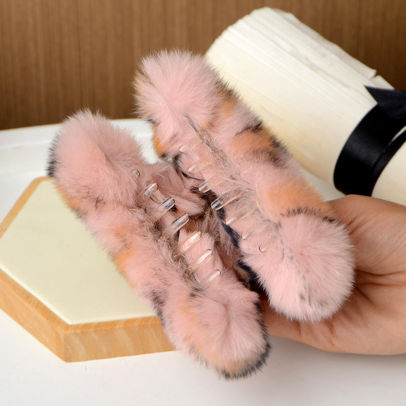 20 Color 2022 Winter Hair Accessories Large 13cm Fuzzy Hair Claw Clip Women Girl Leopard Print Furry Mink Fur Hair Claw Clip