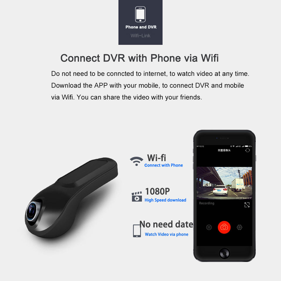 Nom du produit:Caméra de voiture Wifi KUD005