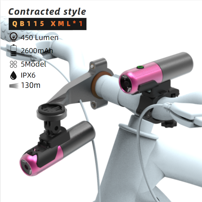 2022 New Arrival Bike Accessories 450lm LED Light Waterproof 2600mAh Battery Lights for Bike Rechargeable Front Light