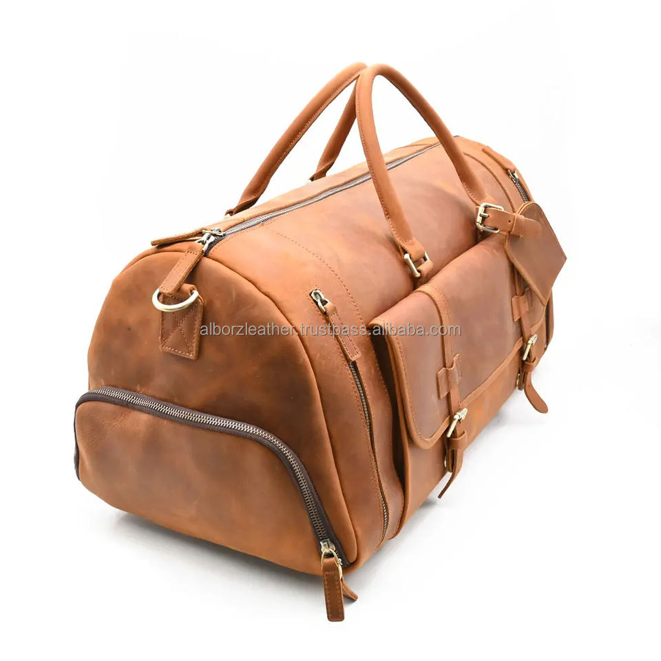 High Quality Custom Logo Genuine Leather Overnight Travel Organizer Big Capacity Portable Business Compartment Shoe Zipper