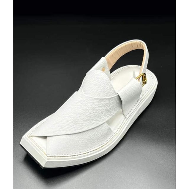 2025 Men's White Peshawari Leather Sandals Hot Selling Open Toe Shoes with Buckle Strap Closure Breathable for Summer Winter