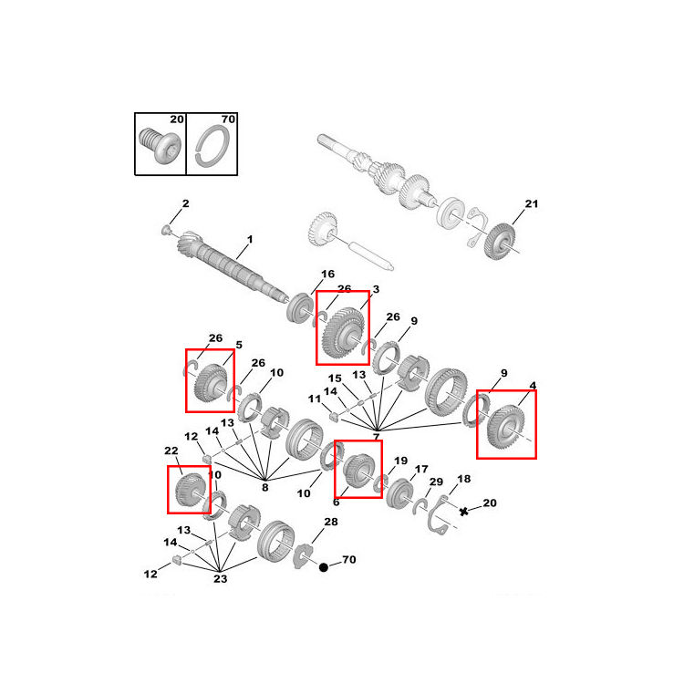233542 233554 Engrenage d'arbre intermédiaire de boîte de vitesses manuelle, pignon d'engrenage de deuxième vitesse pour Peugeot Citroën 1.6