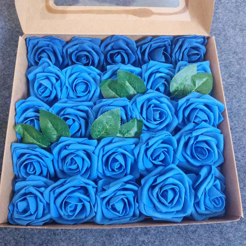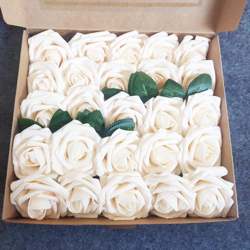 25pcs Artificial PE Foam Rose Flowers Heads With Stem DIY Wedding Party Baby Shower Decorations Bride Bouquet Foam Rose Flower