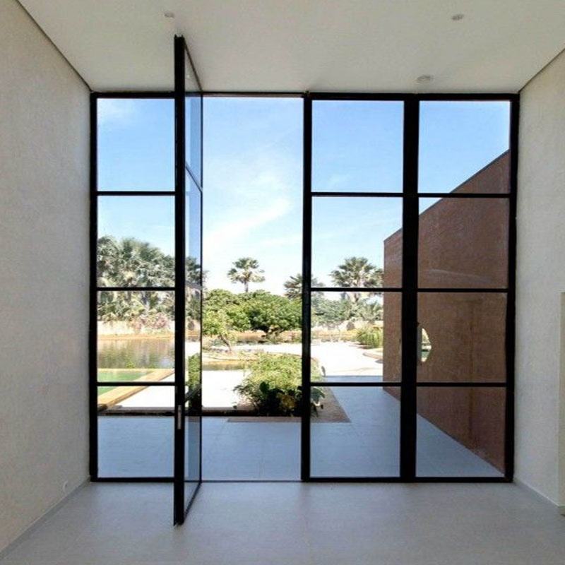 45X16mm Matte Black Aluminum Profile Double Swing Door Two Fixed Glass Wall for Office Home Indoor Individual Interior Door