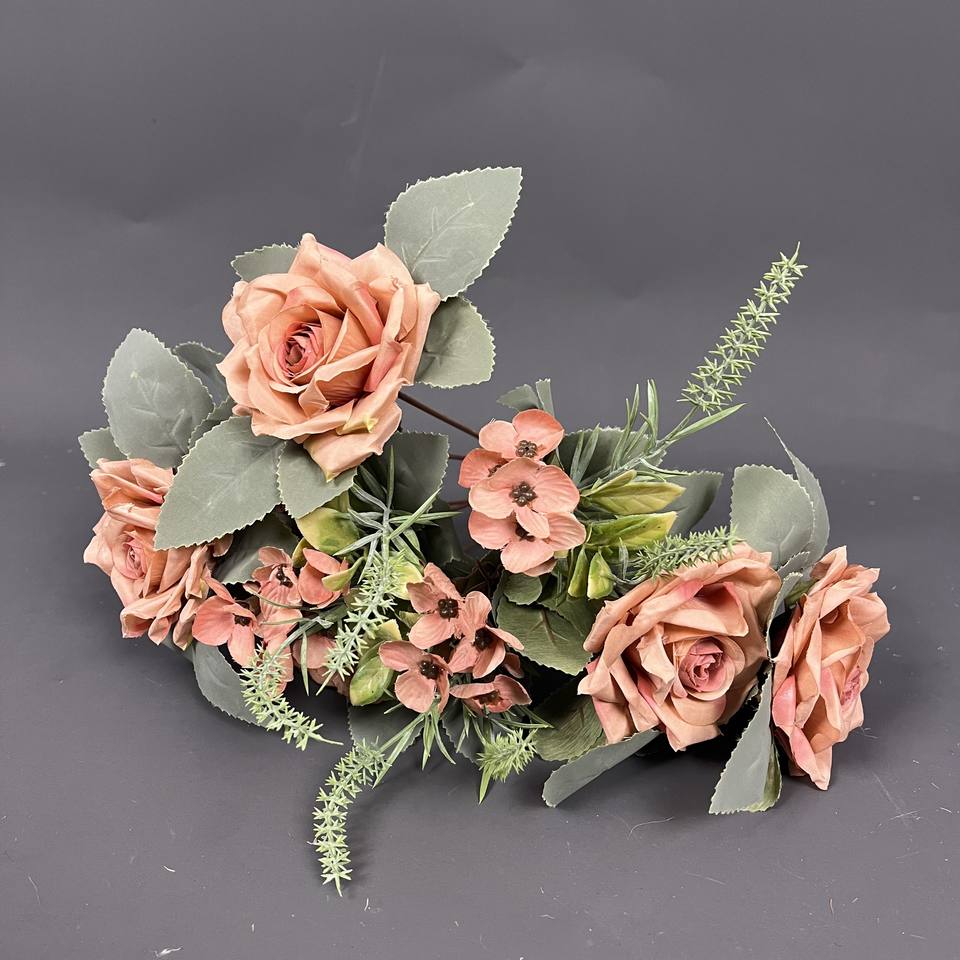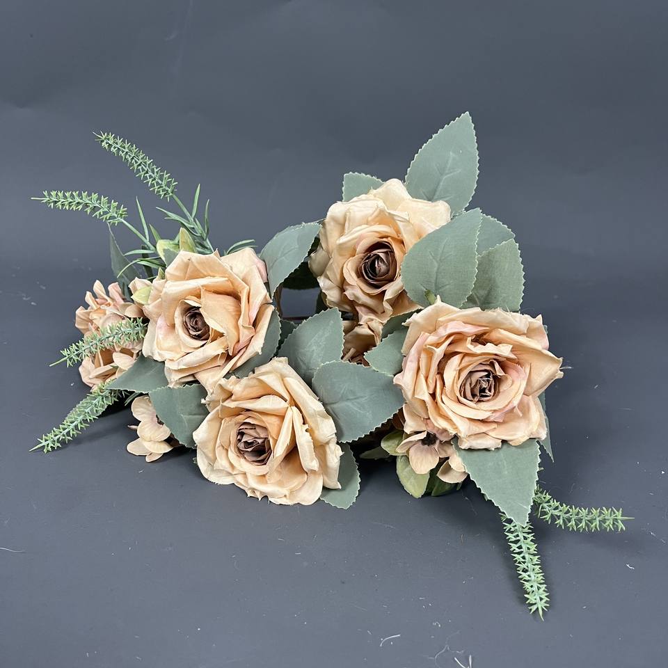 Berserk 9-Head Elegant Vintage Modern Orange Artificial Rose Bouquet for Indoor & Outdoor Decor New Arrival
