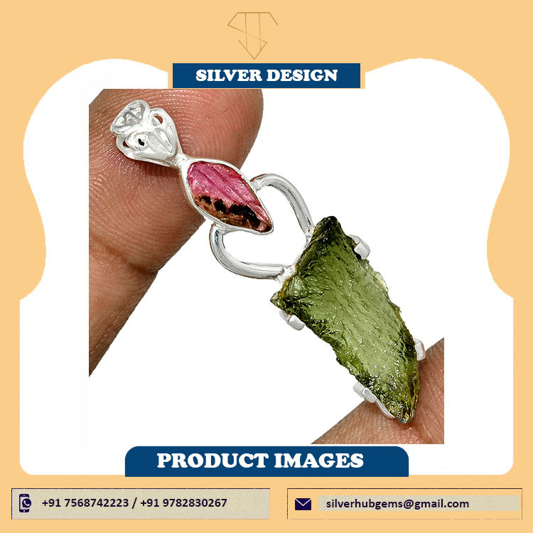 Product Name:Moldavite and Tourmaline Silver Pendant