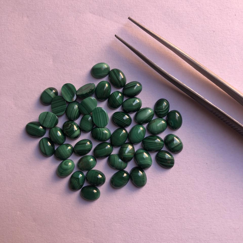 Product Name:9x7mm Natural Malachite Gemstone Flatback Oval Loose Cabochon