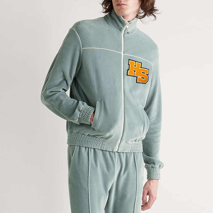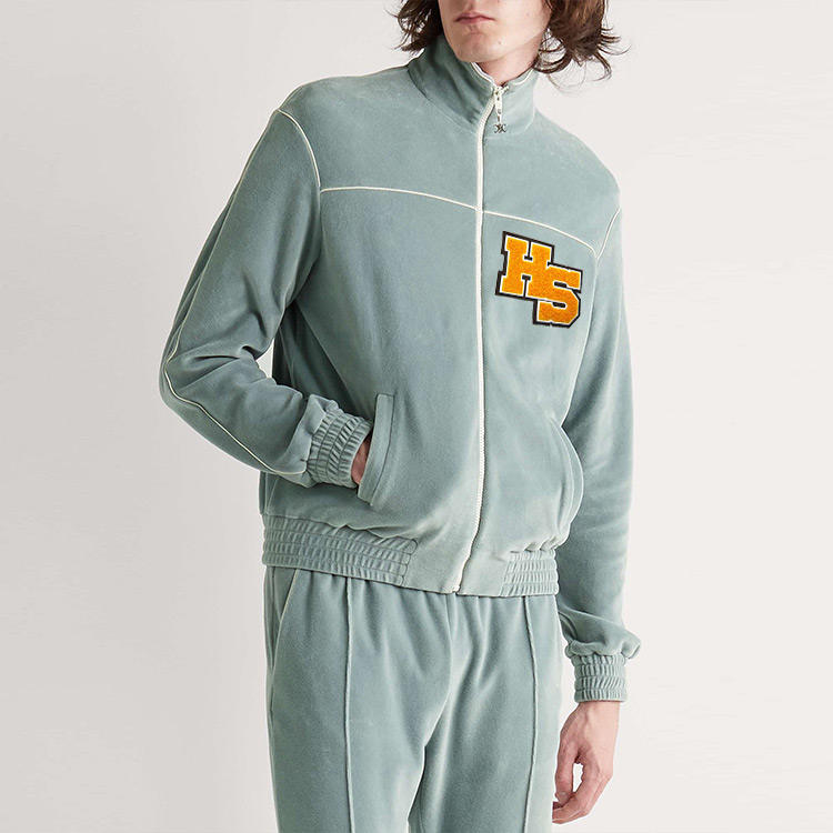 AOXI Custom Winter Men's Zip Collar Sweat Suits Oversized Velour Track Suit Set Chenille Embroidery Breathable Plus Size Velvet