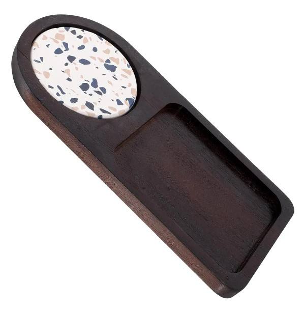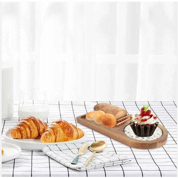 Acacia Wood Serving Platter Bread Serving Board with Dipping Function Cheese Appetizer Platter Charcuterie Board Chip Dip Plate