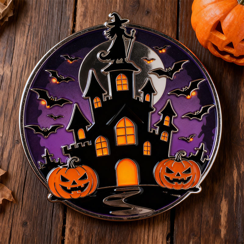 Vente flash Collection de pièces de monnaie pour Halloween en gros Citrouille Château ancien Mignon dessin animé Pièce de monnaie de défi Émail 3D/2D Pièces de monnaie en métal personnalisées
