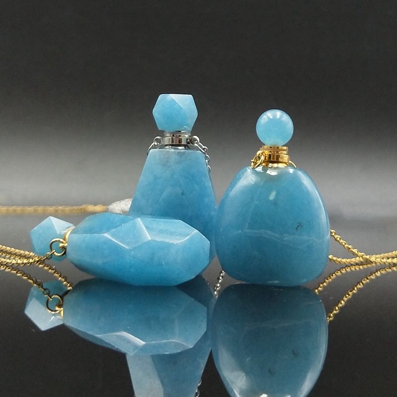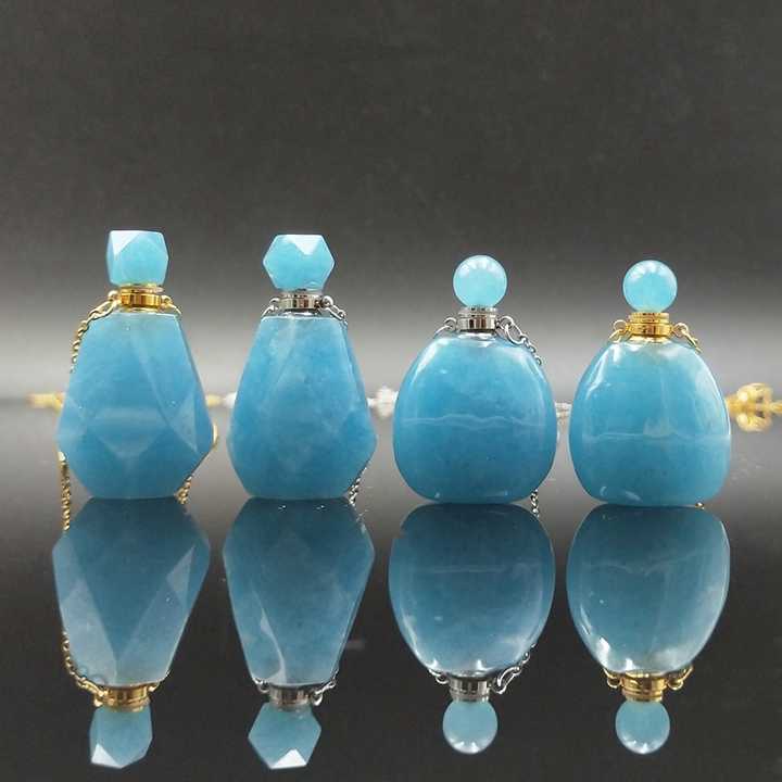 Pendentif en pierre précieuse d'aigue-marine naturelle, collier en plaqué or, huile essentielle polie, bouteille de parfum, cadeaux de pierre d'anniversaire de 12 pouces