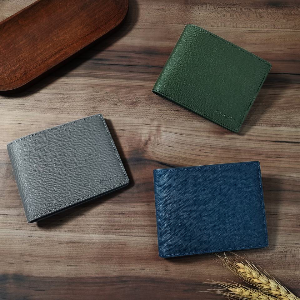 [Bonne affaire] Top qualité fait à la main Castello Saffiano cuir hommes Bi-fold Billfold carte d'identité portefeuille Passcase marine vert gris noir
