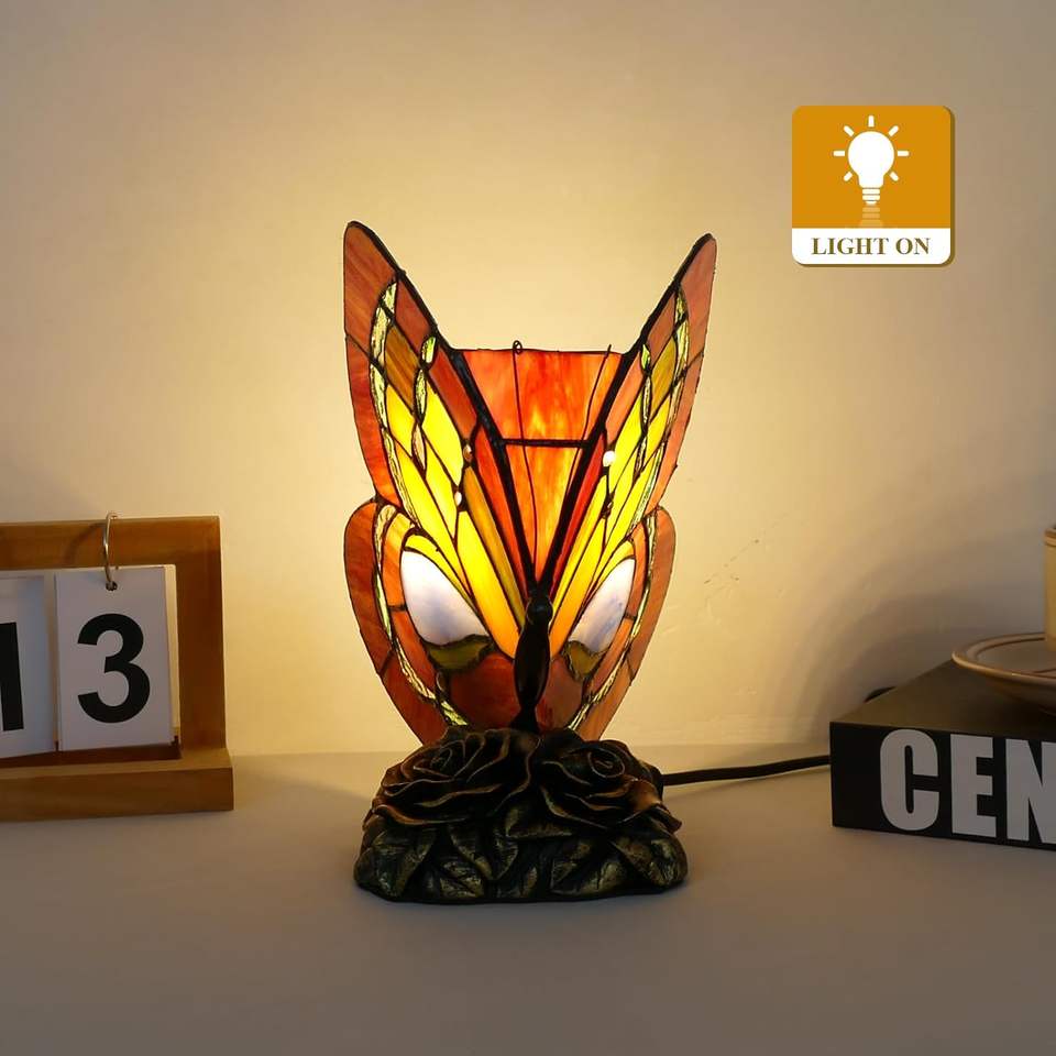 Beautiful Butterfly Lamp Vintage Table Lamp Tiffany Style Stained Glass LED Customized Modern Nordic Lamp E26 Switch Control