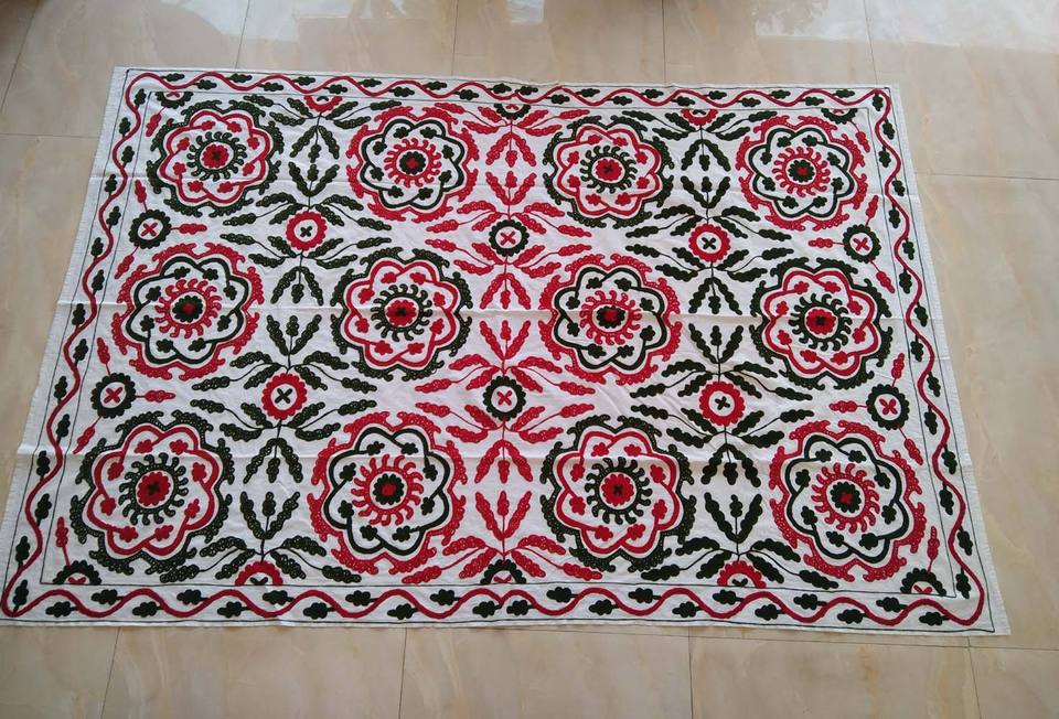 Beau rouge de noël indien fait à la main 100% laine écologique drap de lit bohème Suzani jeter multicolore brodé couvre-lit