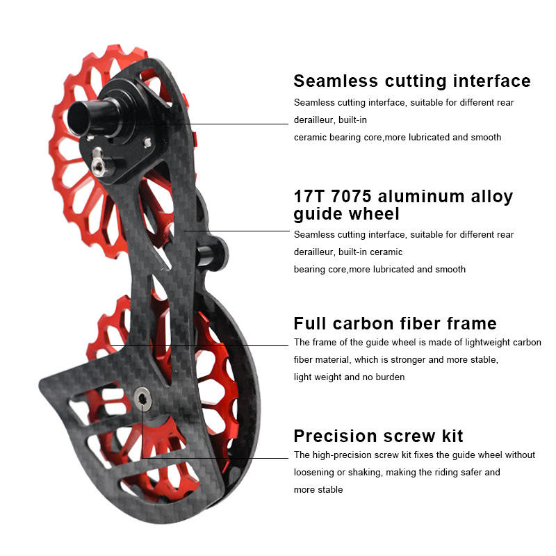 Bicycle Ceramic Bearing Carbon Fiber Jockey Pulley Rear Derailleur 17T for SRAM Red AXS/Force AXS for Shimano4600/4700/5700/5800