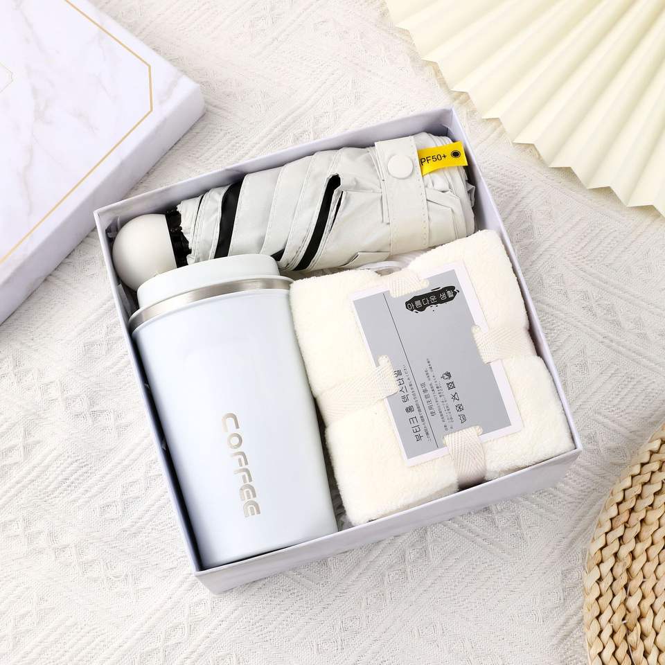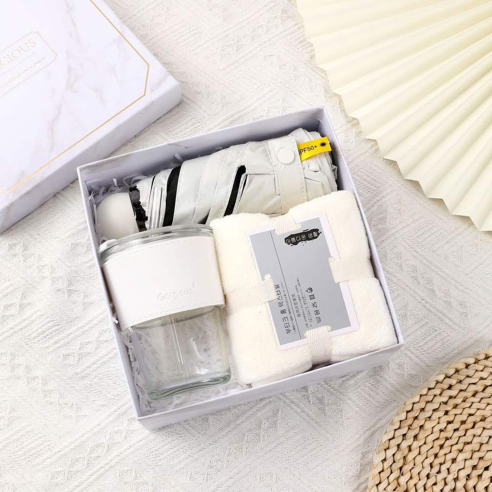 Emballage élégant Stay Cool Portable Fan Tasses et Parapluie Soleil Anniversaire Mariage Saint Valentin Coffret Cadeau pour toute occasion