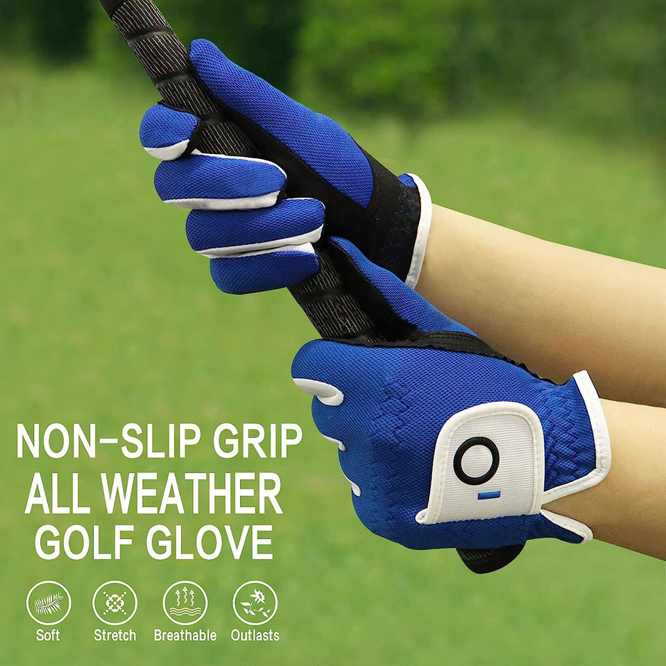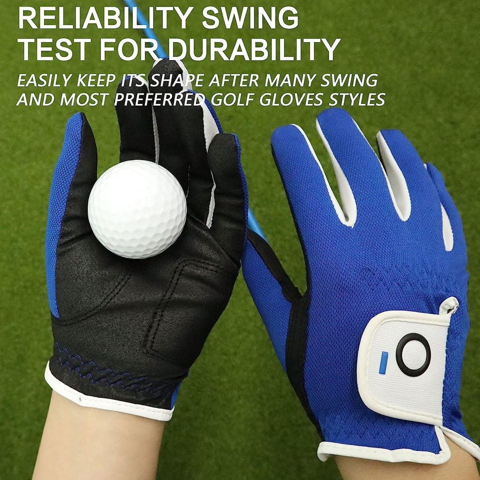 Gants de golf en cuir PU bleu, personnalisables, légers, imperméables, respirants, avec fermeture à crochet, pour droitiers et gauchers