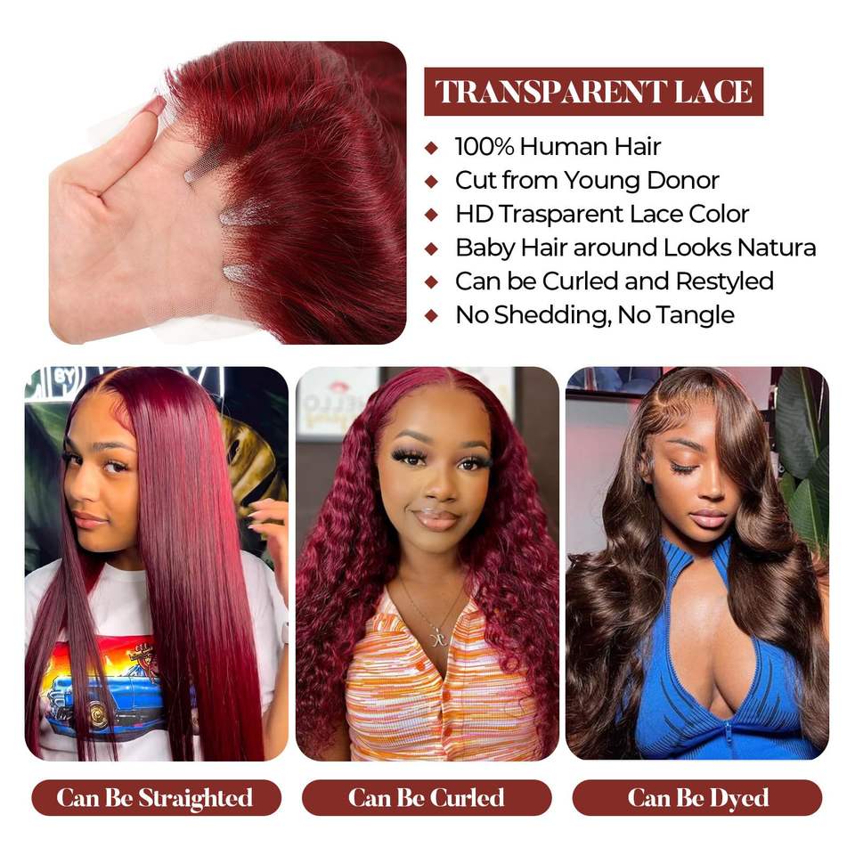 Burgundy #99J 13x4 HD Transparent Lace Frontal Human Hair Wigs 4x4 Closure Human Hair Wigs for Black Women