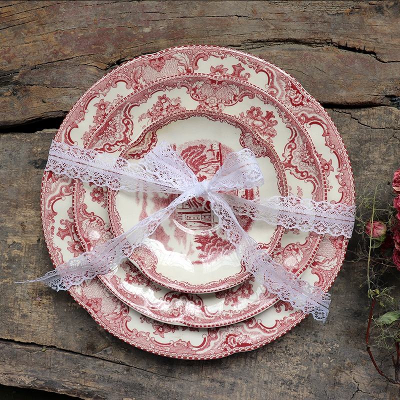Grande assiette bol assiette à gâteau, exportation, série de château rouge de l'ouest grande assiette en porcelaine, assiette à dessert, plat à gâteau