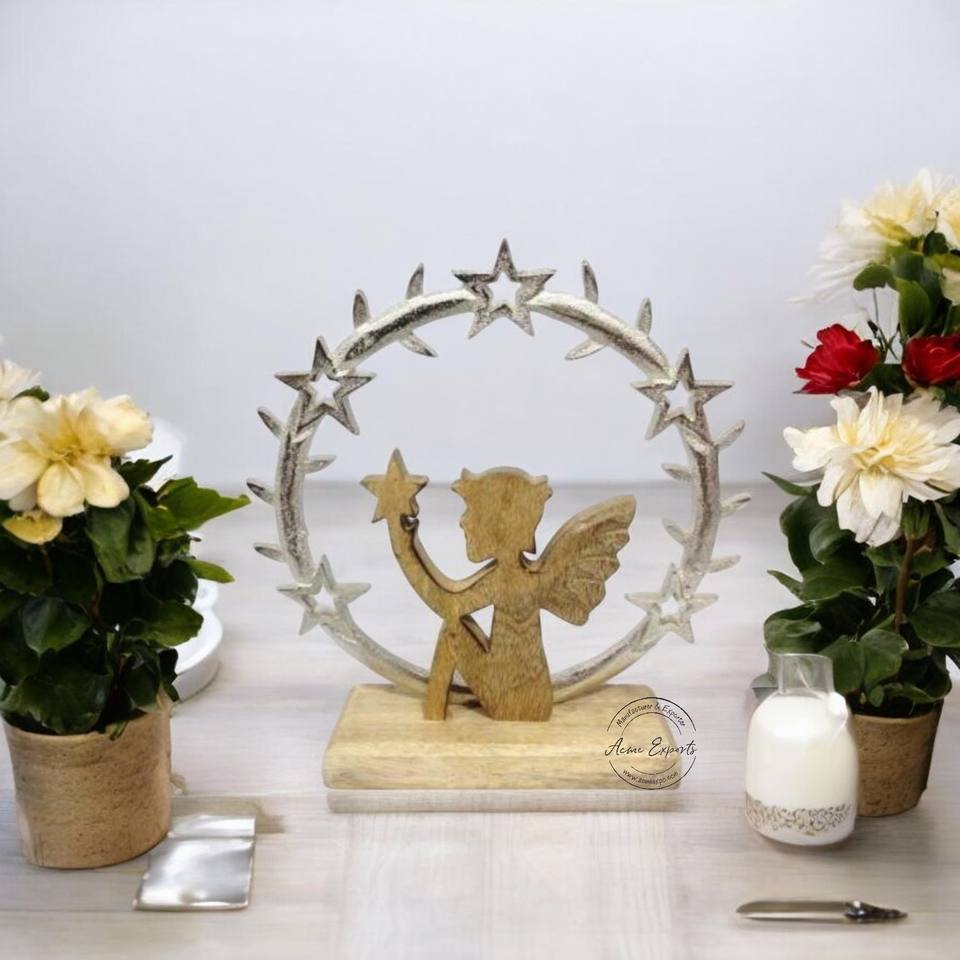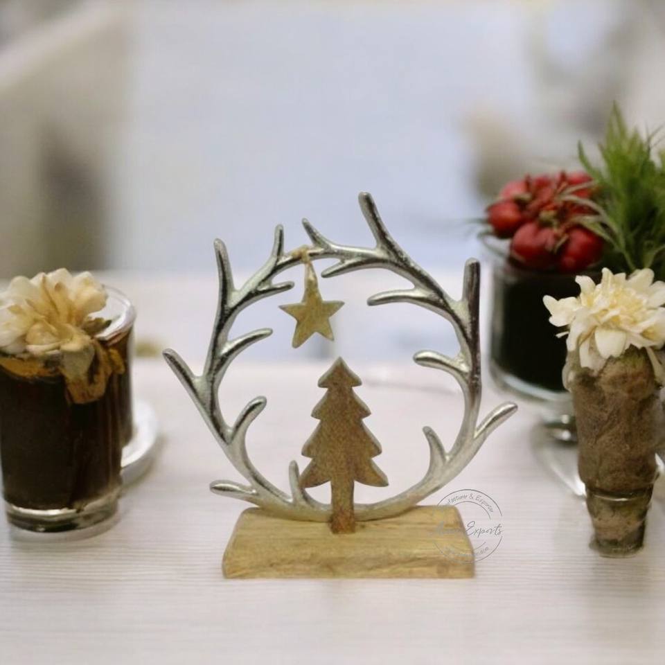 Décor de table de renne en bois et métal avec anneau en bois de cerf et centre de table festif en étoile parfait pour la décoration de Noël