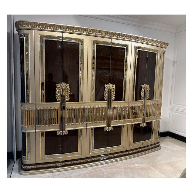 Classic Carved Black Gold Triple Door WardrobeProduct name