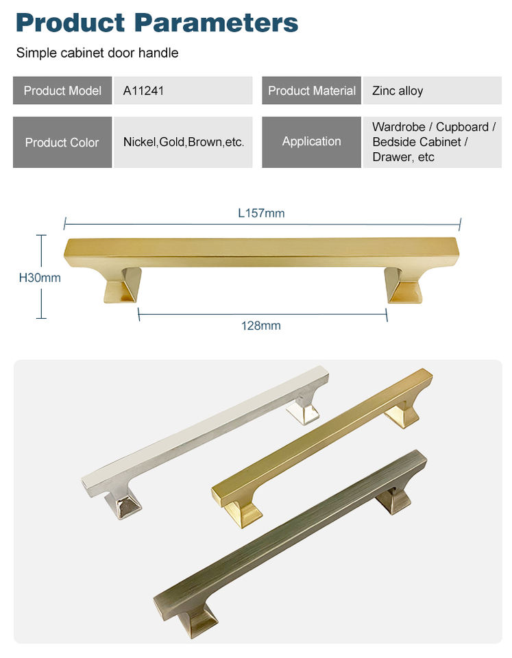 Quincaillerie d'ameublement moderne et polyvalente en alliage de zinc Placard de chambre à coucher élevé Cuisine Salon Cataphorèse Poignée en zinc Tiroir de garde-robe