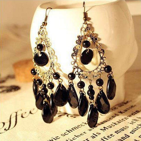 Boucles d'oreilles pendantes noires pour femmes, bijou de qualité, à longues franges, tendance coréenne