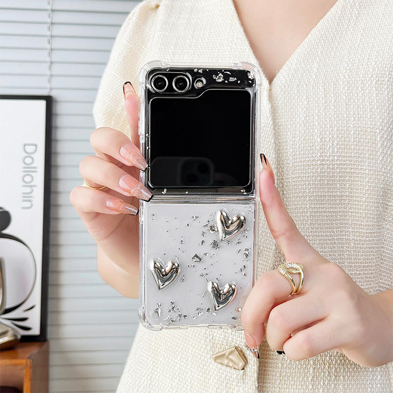 Étui de téléphone pliable à rabat Love de haute qualité, résistant aux chocs, magnétique, en TPU électro-plaqué créatif pour Z Flip 6