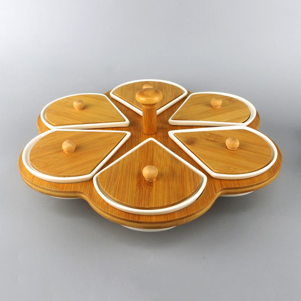 Plateau central à fruits suspendu sectionnel créatif Plateau à fruits en céramique séchée nordique avec étagères en bois pour plaque de noix éthiopienne