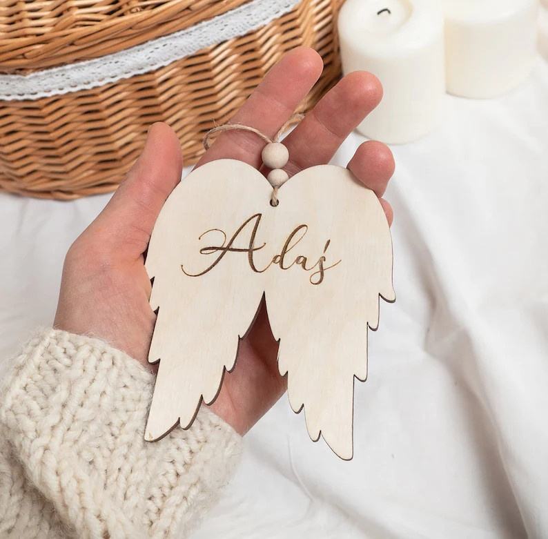 Cadre en bois personnalisé Delarchi avec ailes d'ange de Noël, gravure de nom, 2 couleurs, affichage de photos d'anniversaire à domicile, rangement personnalisé, ailes