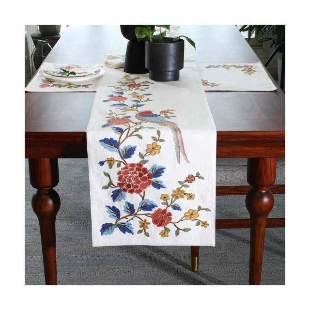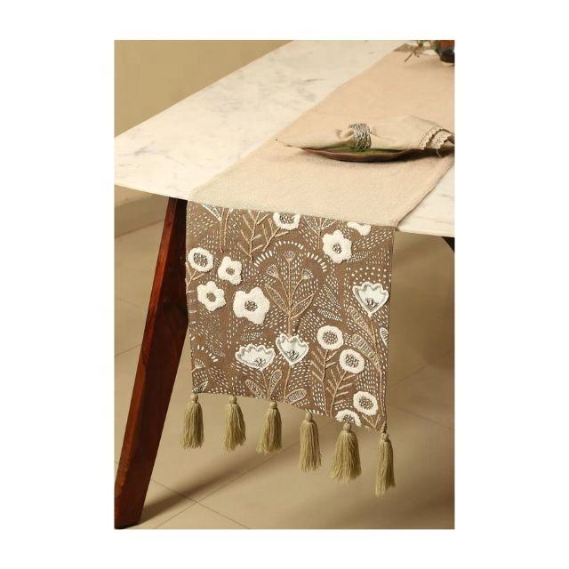 Custom Embroidered 100% Organic Cotton Table Runner Beige Color GOTS Certified Luxury Elegant Wedding Rectangular Home Decor