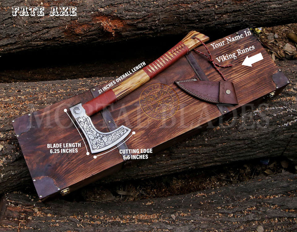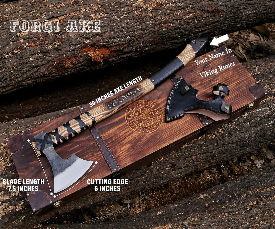 Hache viking en acier carbone faite à la main avec manche en bois, préhension parfaite et hache de camping équilibrée