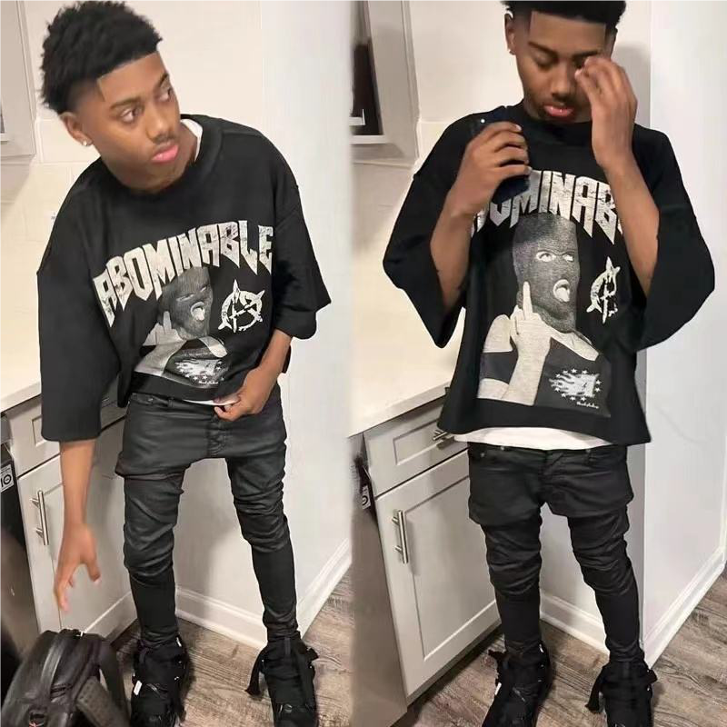 Custom Logo Heavyweight 360gsm French Terry Fabric Sweatshirt for Men Cropped Rips Cut and Sew Cotton Tshirt