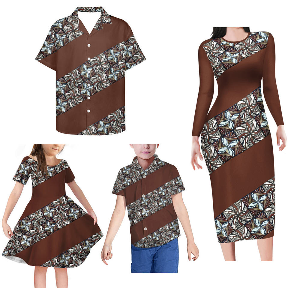 Robe à imprimé personnalisé de tatouage polynésien, robes assorties pour la famille, robe moulante sexy à manches longues, ensemble familial
