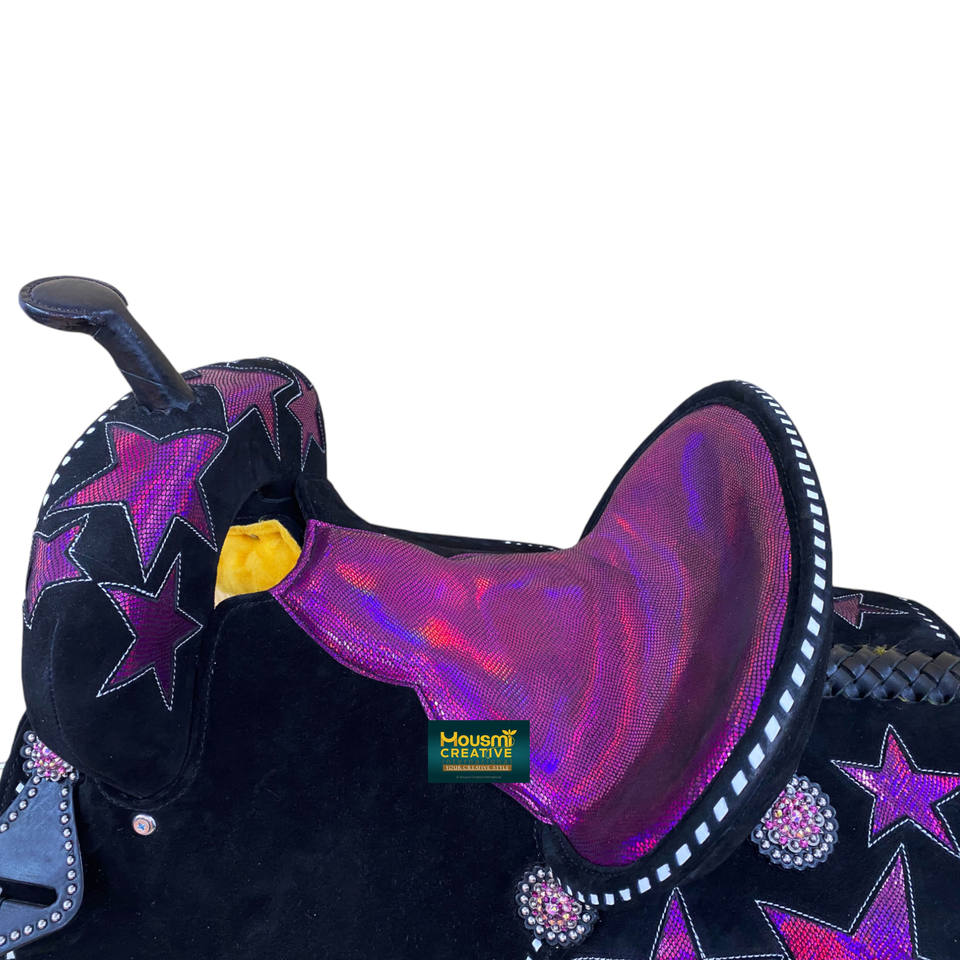 Nom du produit:Western Horse Véritable Cuir de Vachette Daim Étoile Patch Décor Selles