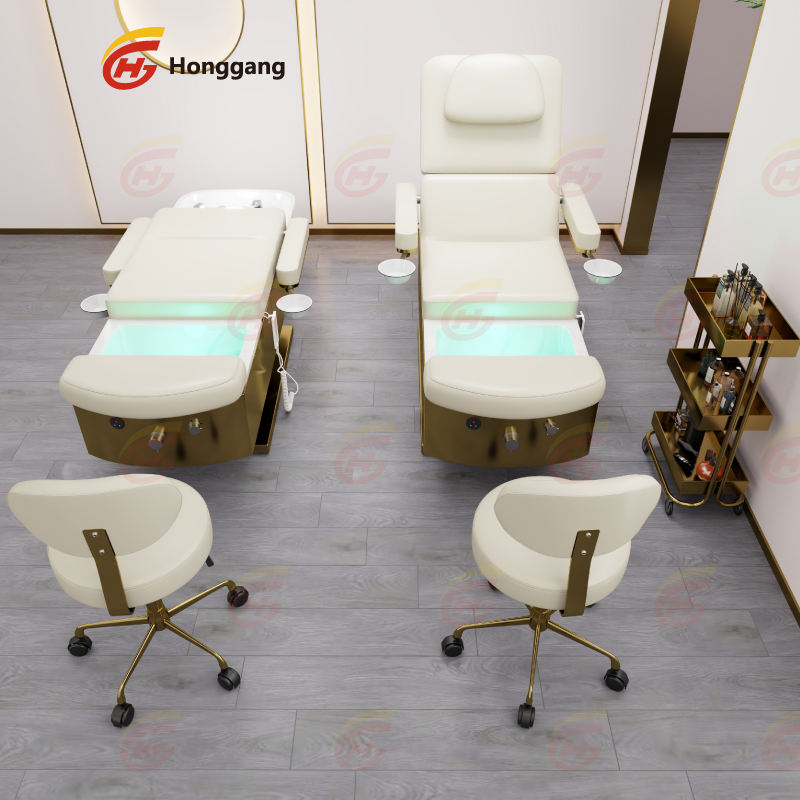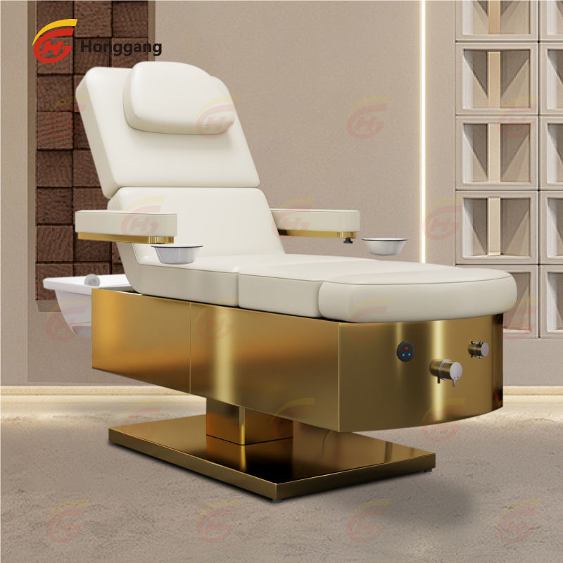 Salon de beauté thaïlandais personnalisé en acier inoxydable doré, lit de massage avec shampoing électrique pour le lavage des pieds avec 3 moteurs
