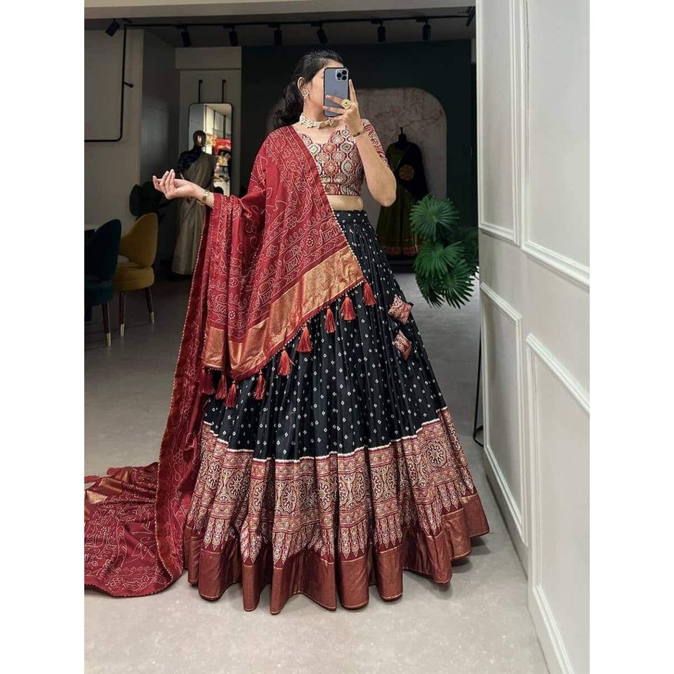 LEHENGA CHOLI EN SOIE HEAVY IMPRIMÉE NUMÉRIQUEMENT PAR DES DESIGNERS AVEC DUPATTRA NOIR
