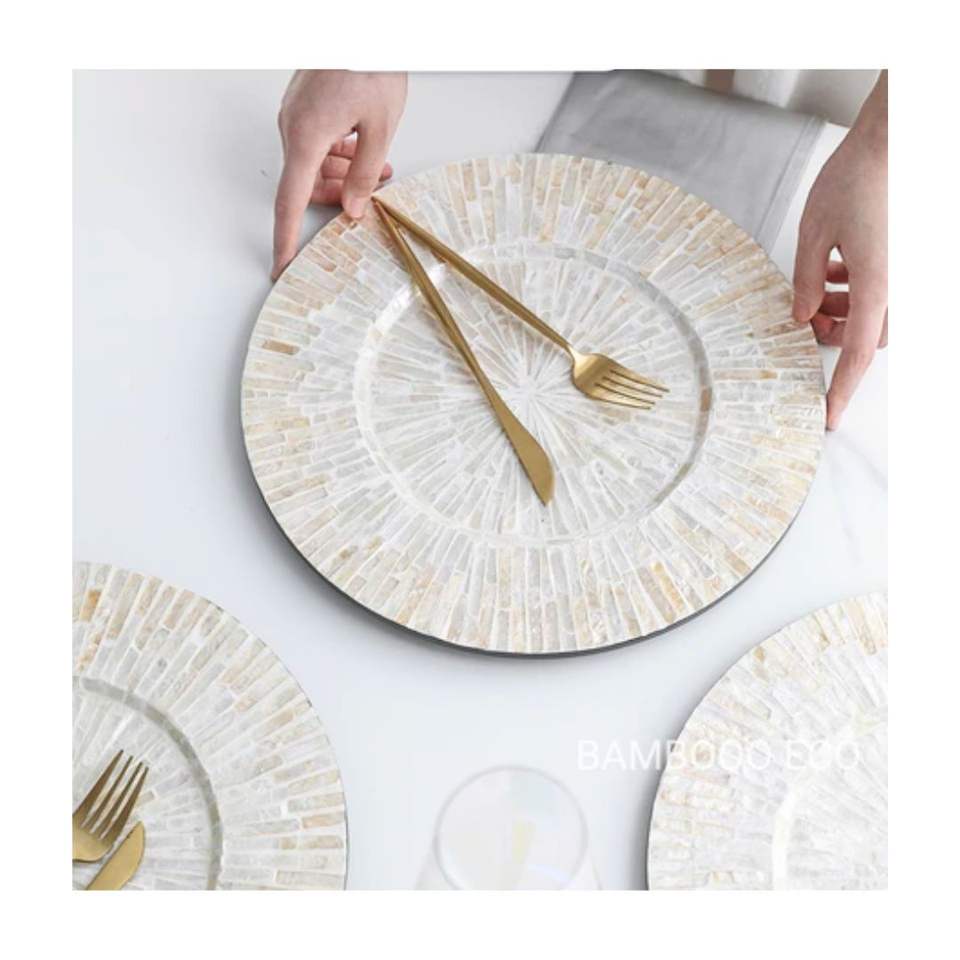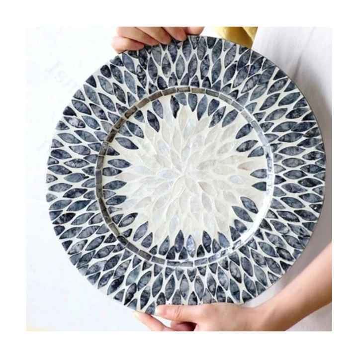 Deluxe Mother of Pearl Elegant Pearl Inlay Charger Plate Custom Size Dessert Serving Tray for Home Decor and Arabic Gifts