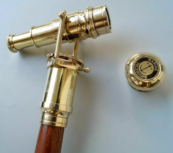 Foldable Walking Stick Cane Brass Telescope
