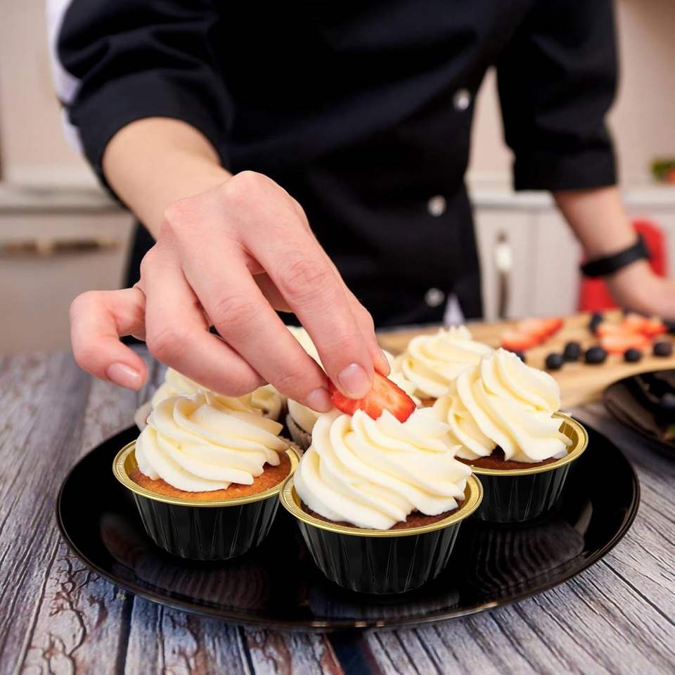 Product name:Disposable Black Gold Mini Aluminum Foil Cupcake Baking Cups with Lids