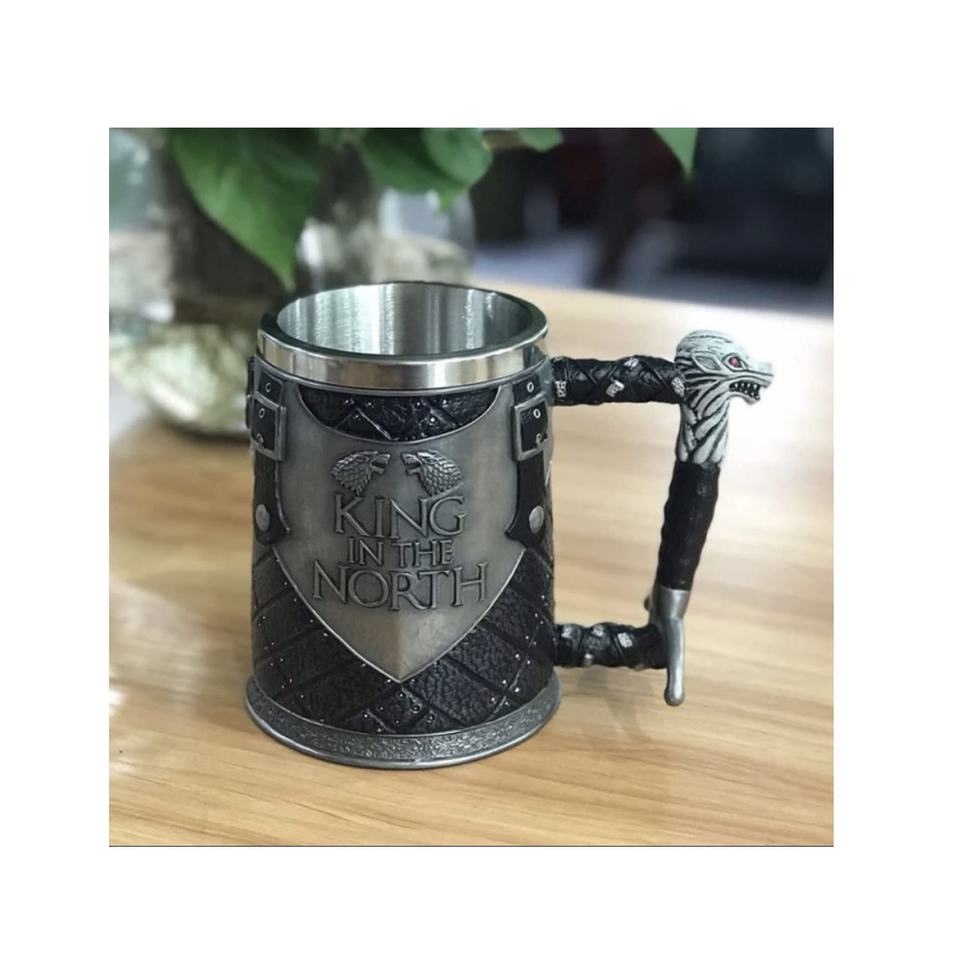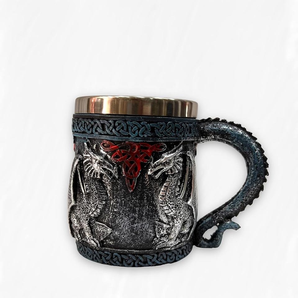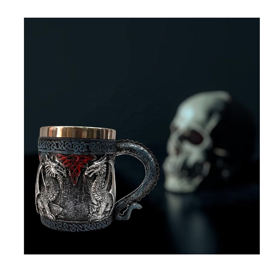 Drinking Mug Double Wall Pure Stainless Steel Resin Gothic Helmet Beer Mugs Knight King Tankard Dragon Wolf Cup for Home & Hotel