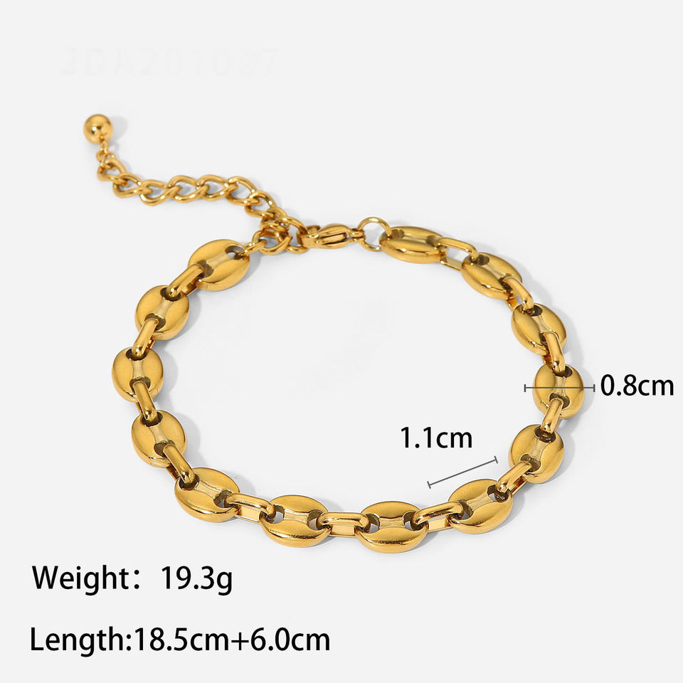 Dropshipping Punk Hip Hop Jewelry Chunky Ankle Bracelet Waterproof PVD 18K Gold Stainless Steel Coffee Bean Chain Bracelet