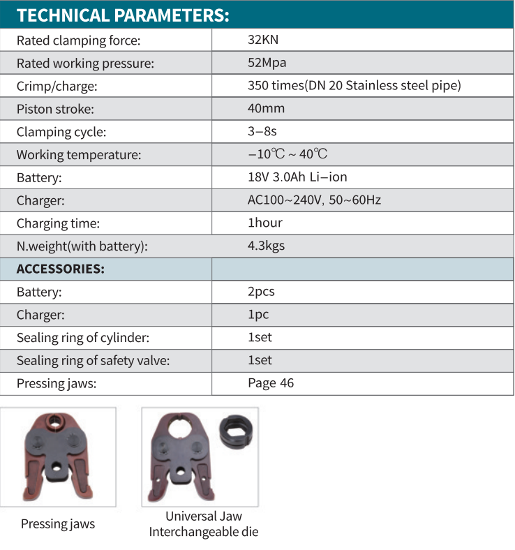 Nom du produit:Outils de sertissage hydrauliques pour plomberie en gros EZ-1550