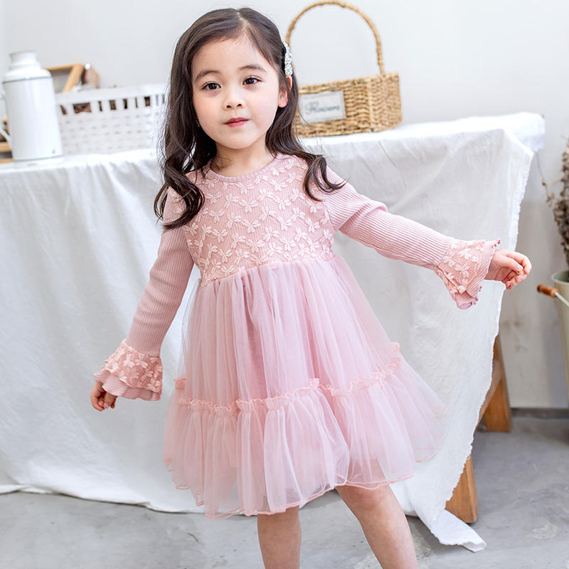 Nom:Rouge Little Kids Filles Manche longue Robe de soirée